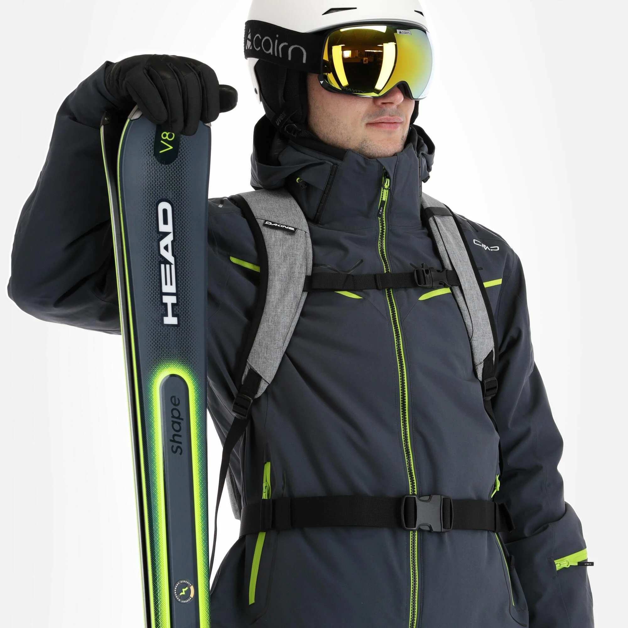 - Cuello alto The ski jacket has a high collar which protects your neck.