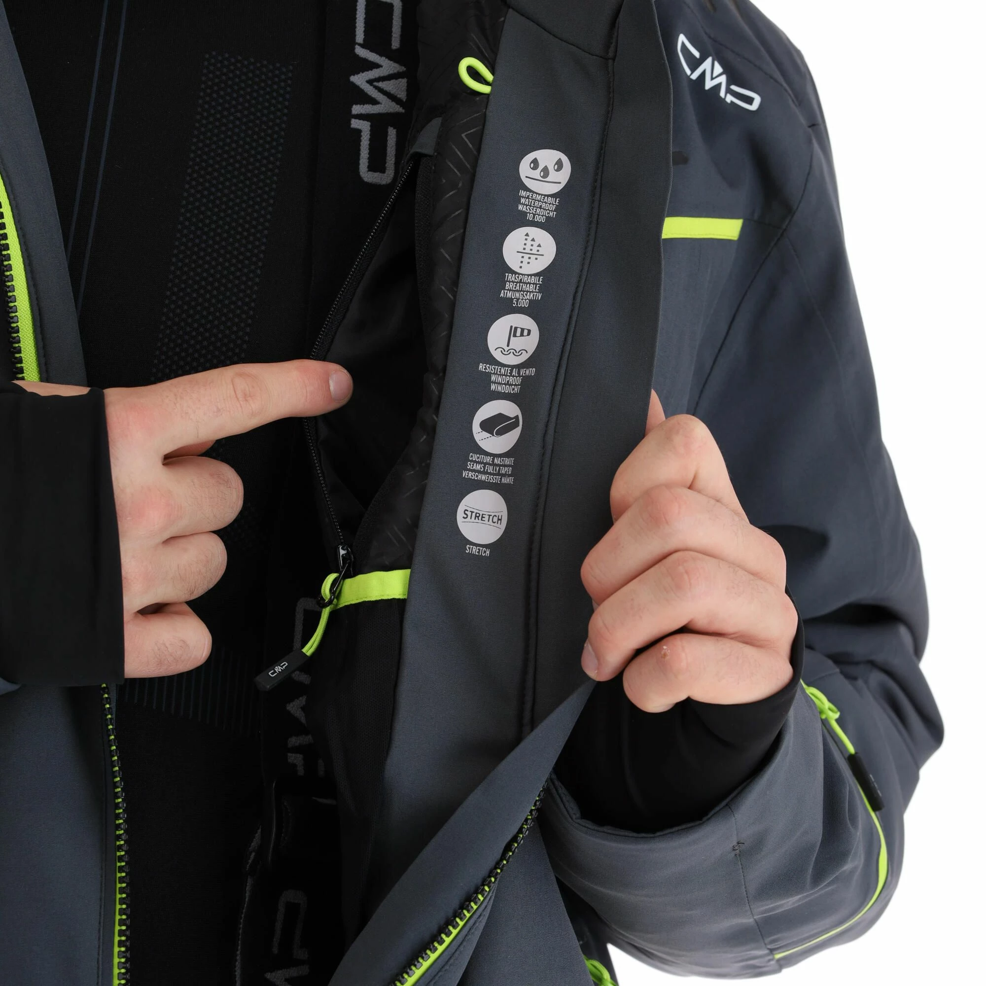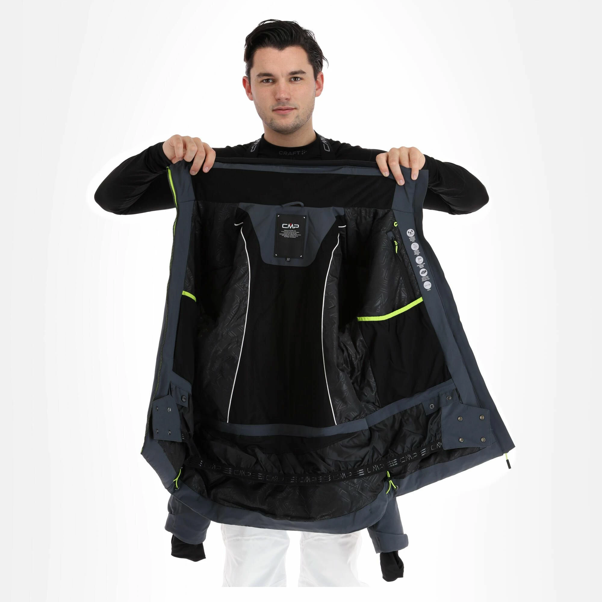 - Puños elásticos The ski jacket has extra cuffs of stretch/lycra. This way, snow and wind cannot just penetrate through your sleeves.