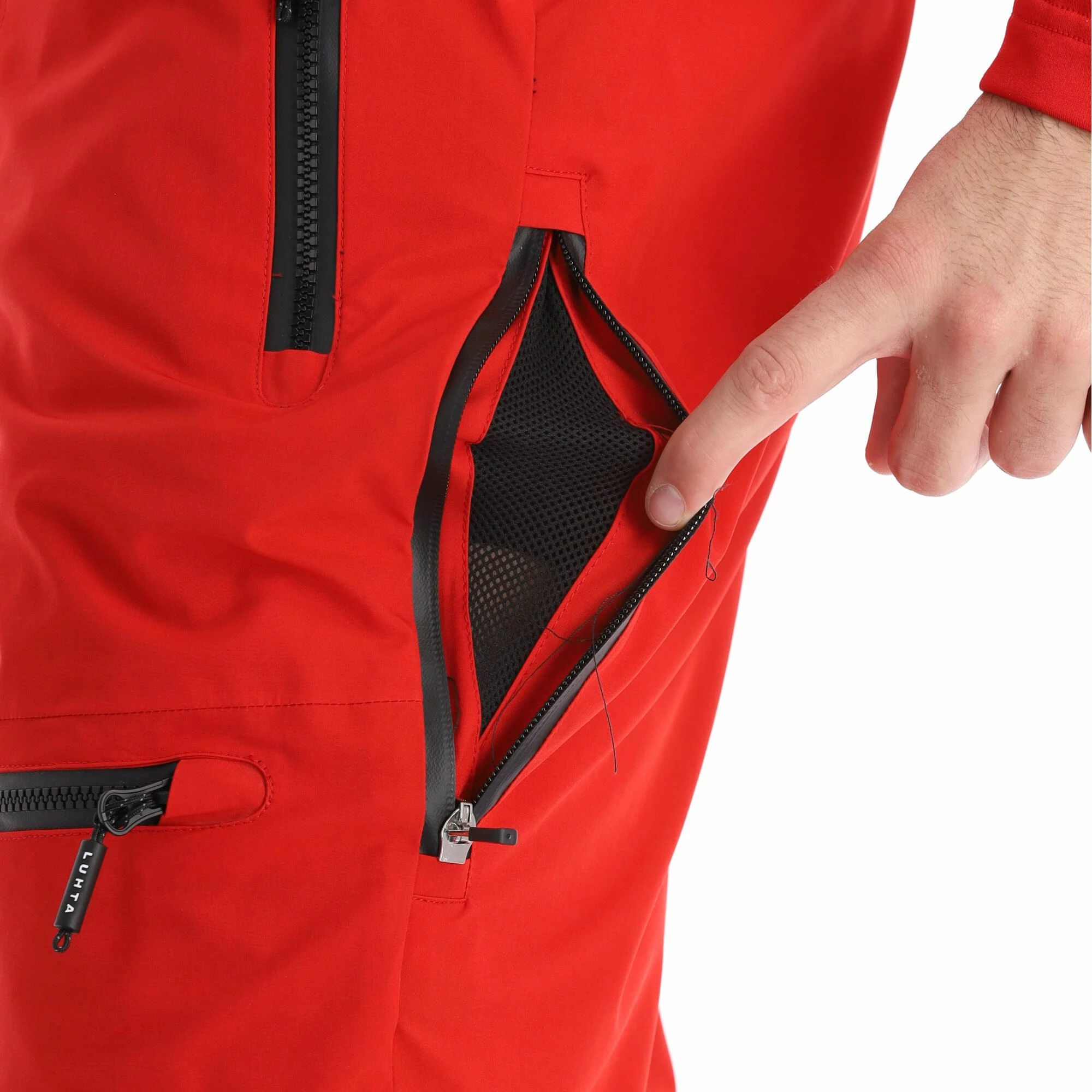 - Cremallera impermeable The ski pants have a water-repellent zipper.