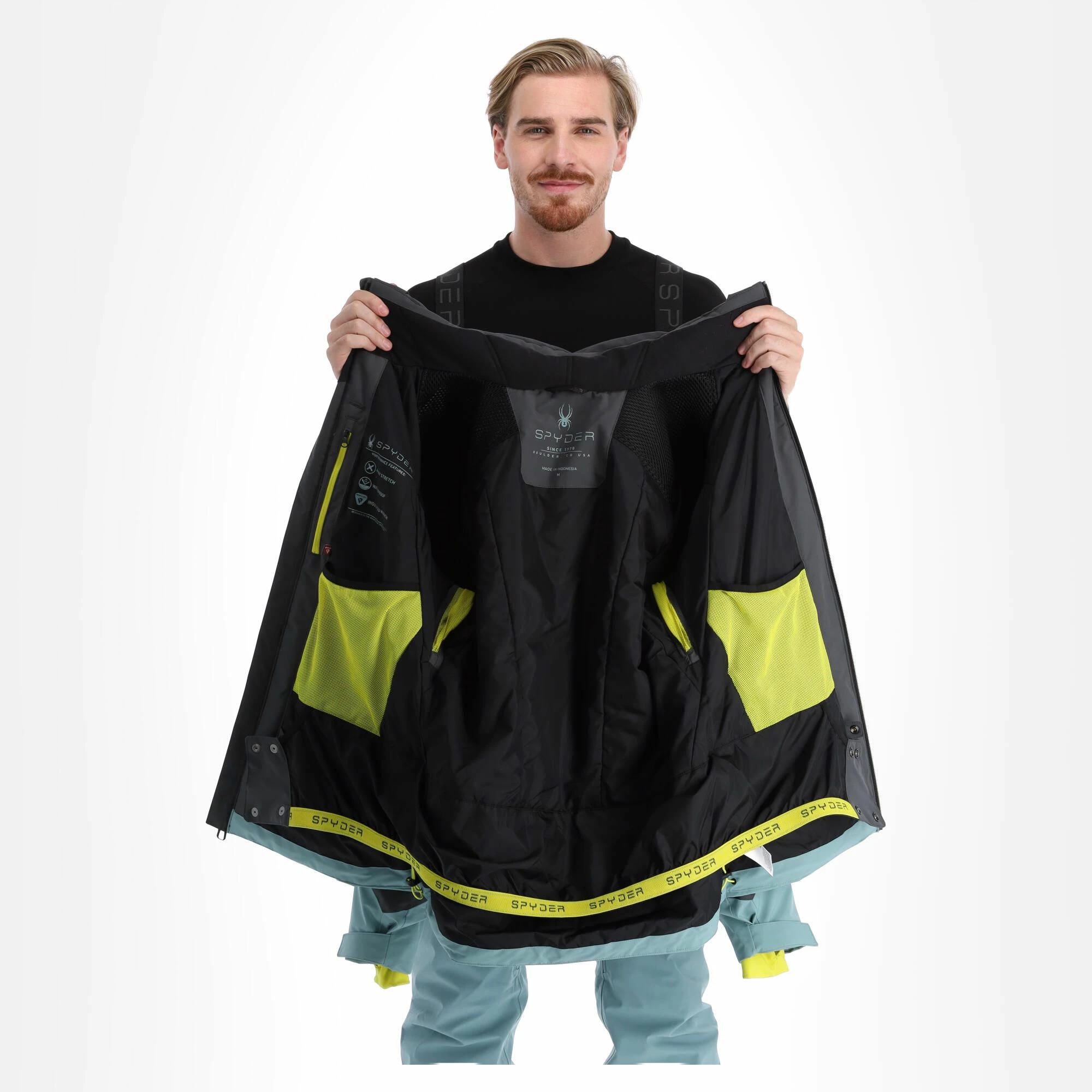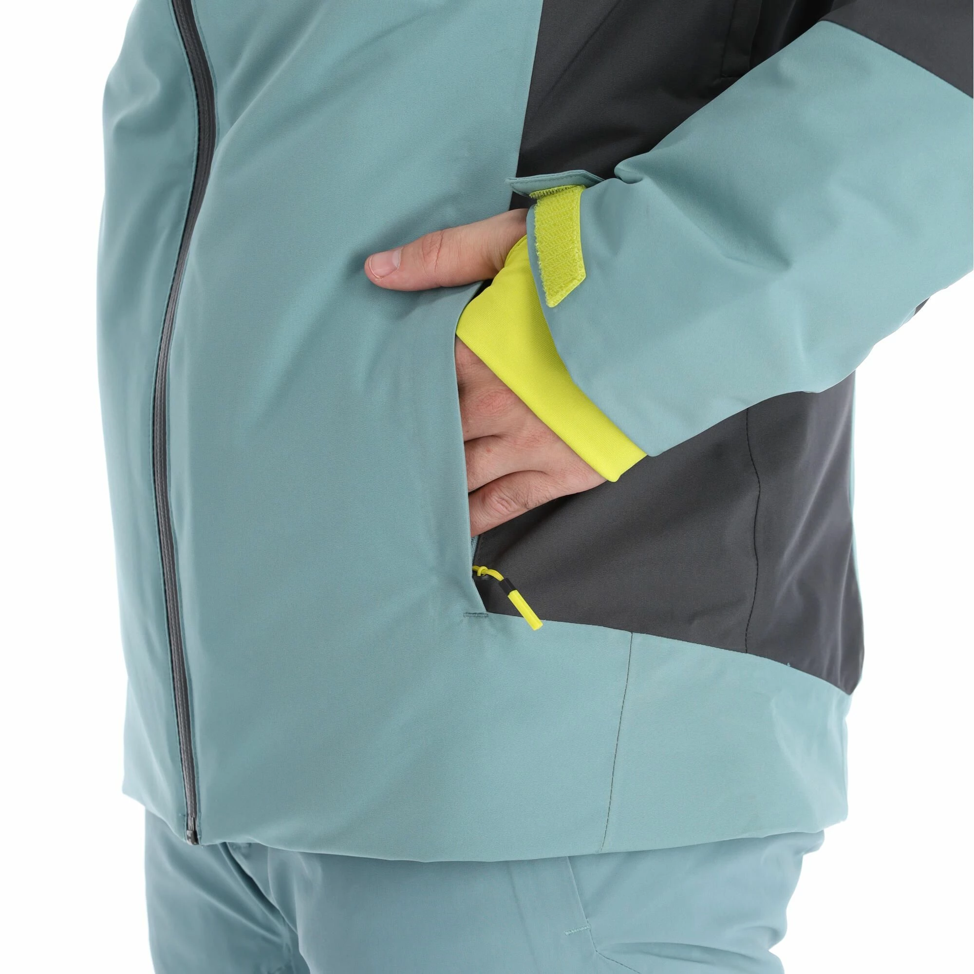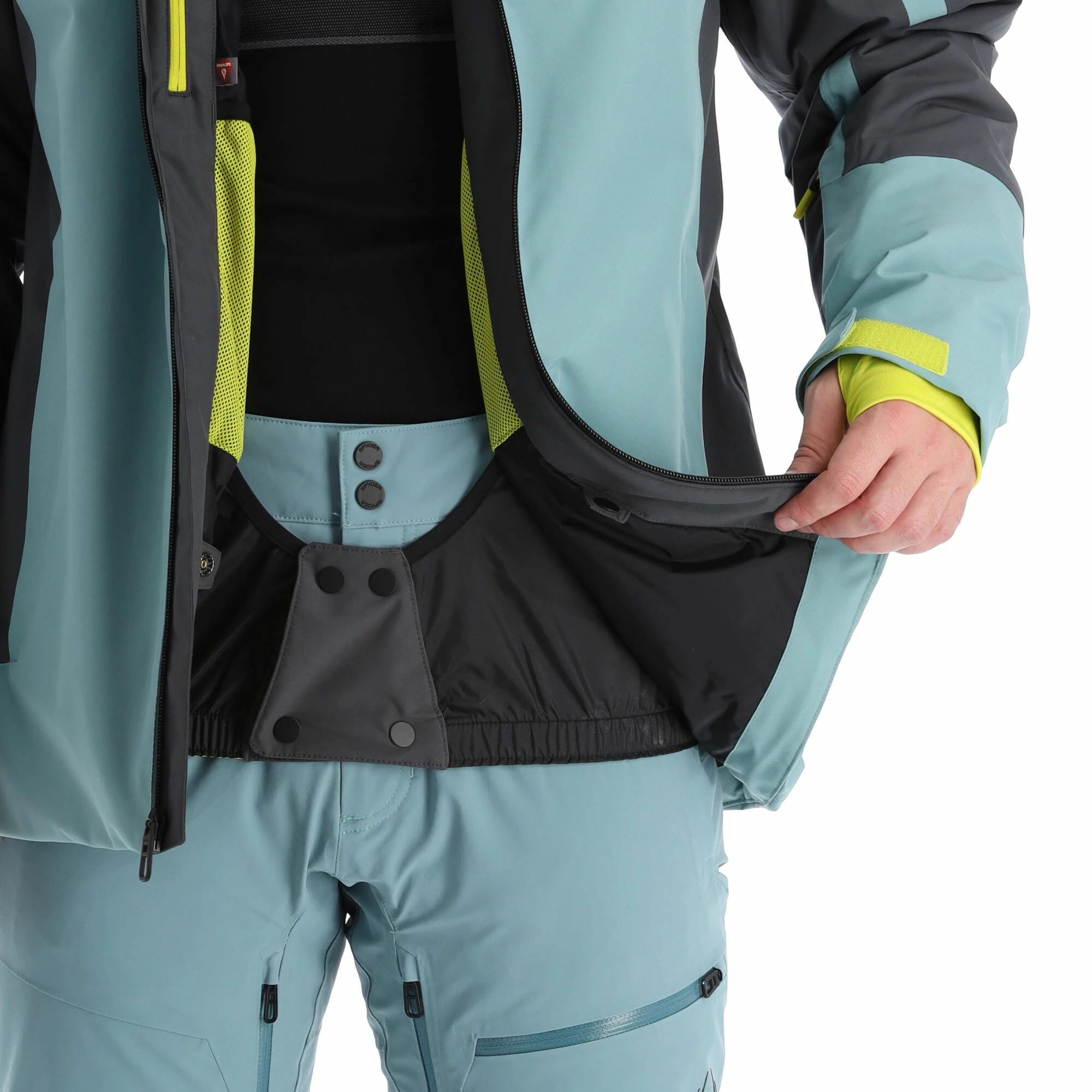 - Sensor de nieve fijo The ski jacket has an extra band with elastic at the bottom, so that snow cannot penetrate into your ski jacket from below.