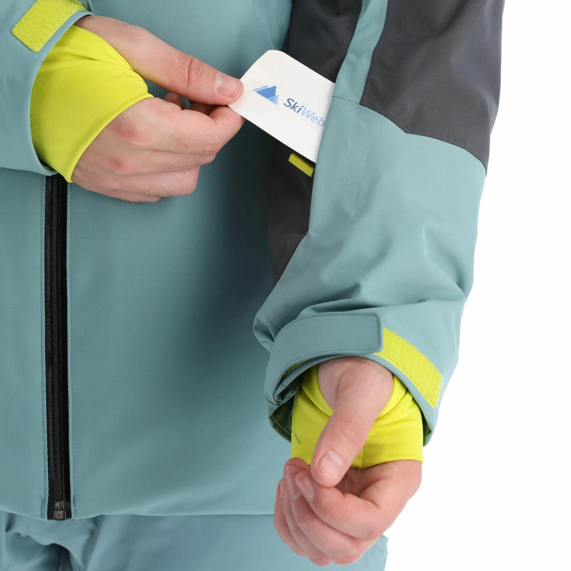 - Puños con orificio para el pulgar The ski jacket has a hole in the cuffs for your thumbs. This ensures that snow and wind cannot just penetrate through your sleeves.