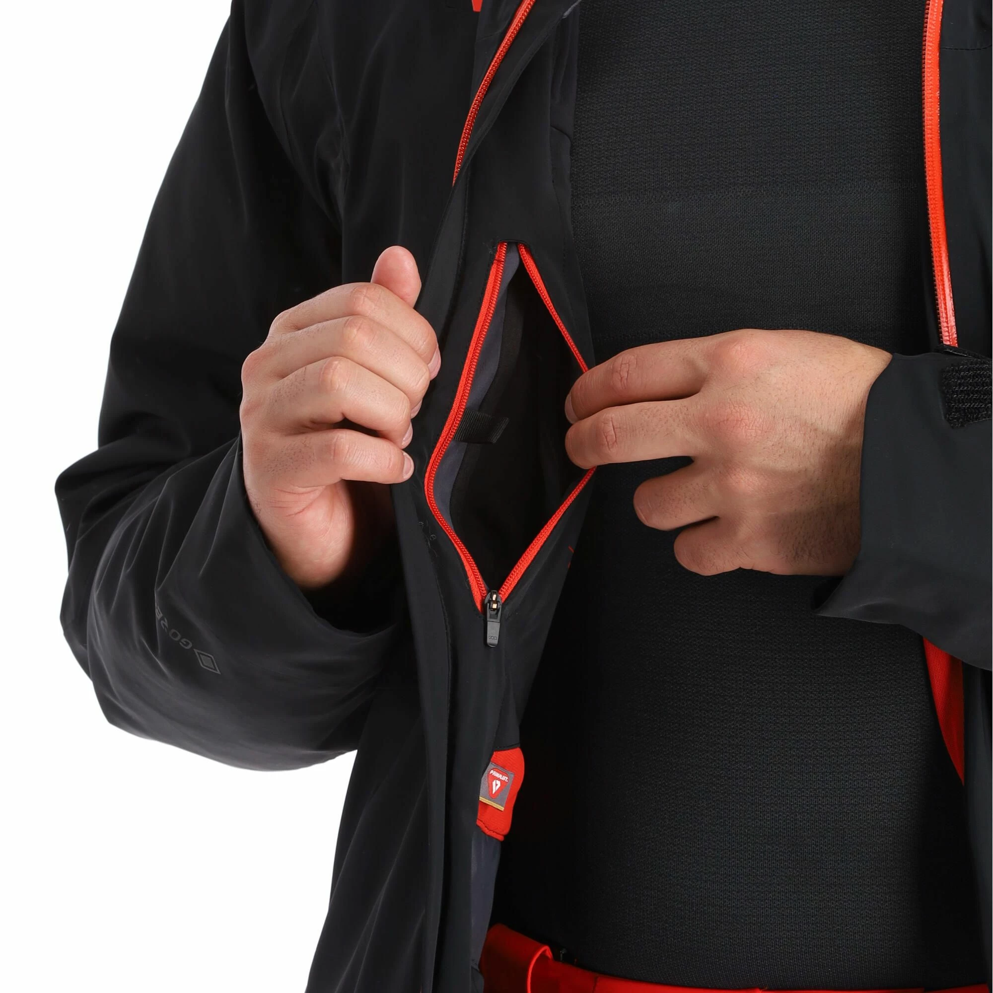 - Cremalleras de ventilación debajo Your body temperature can be well regulated with the ventilation zippers in your ski jacket. You can choose yourself whether you want the zippers open or closed.